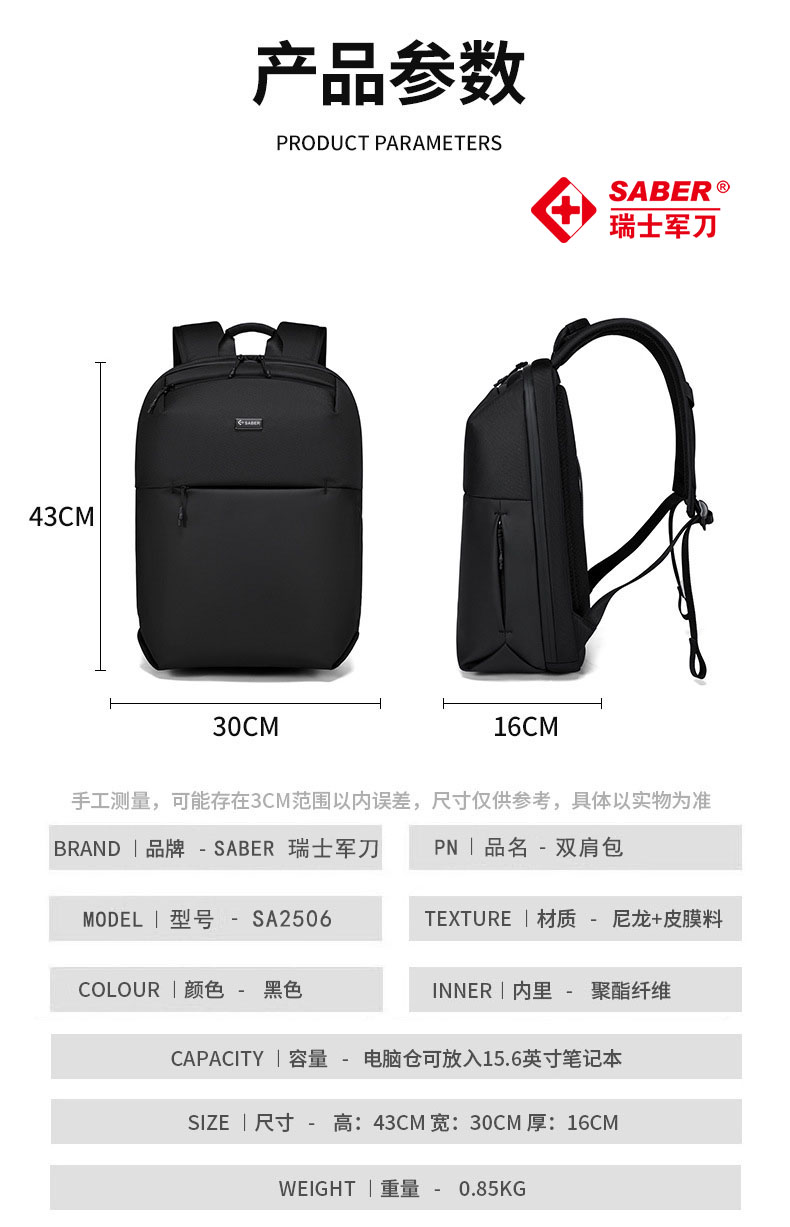 • 商品名称:SA2506瑞士军刀双肩背包