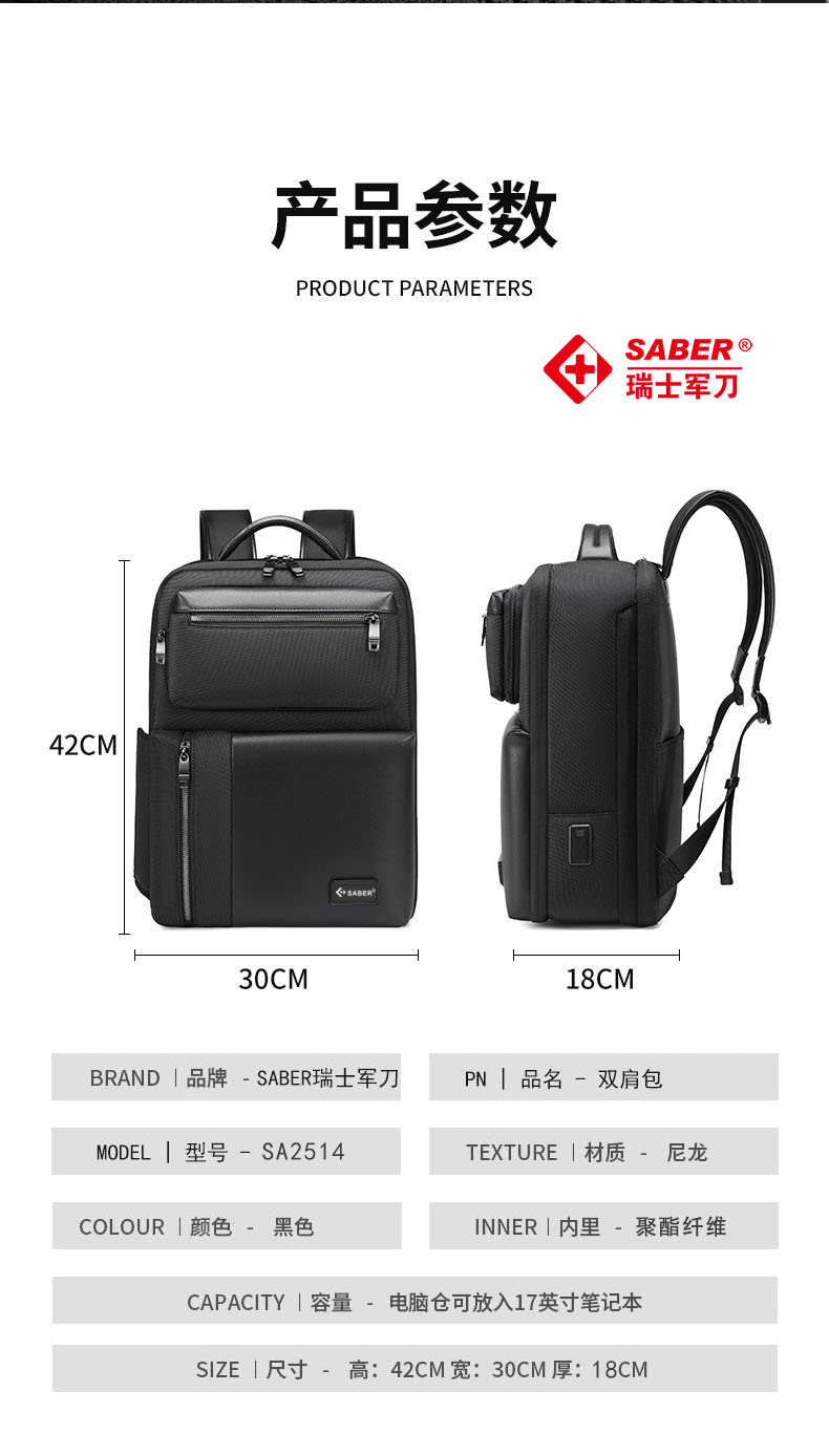 • 商品名称:SA2514瑞士军刀双肩背包
