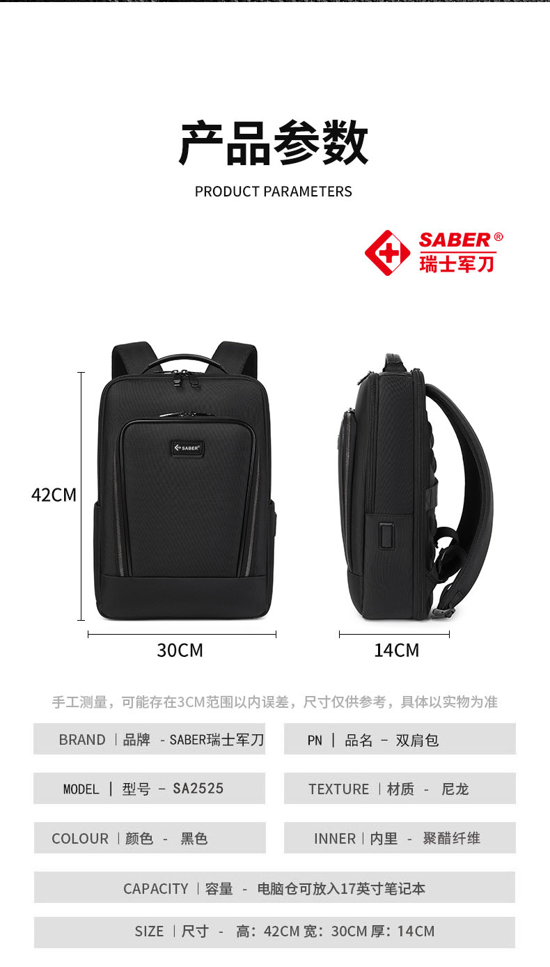 • 商品名称:SA2525瑞士军刀双肩背包