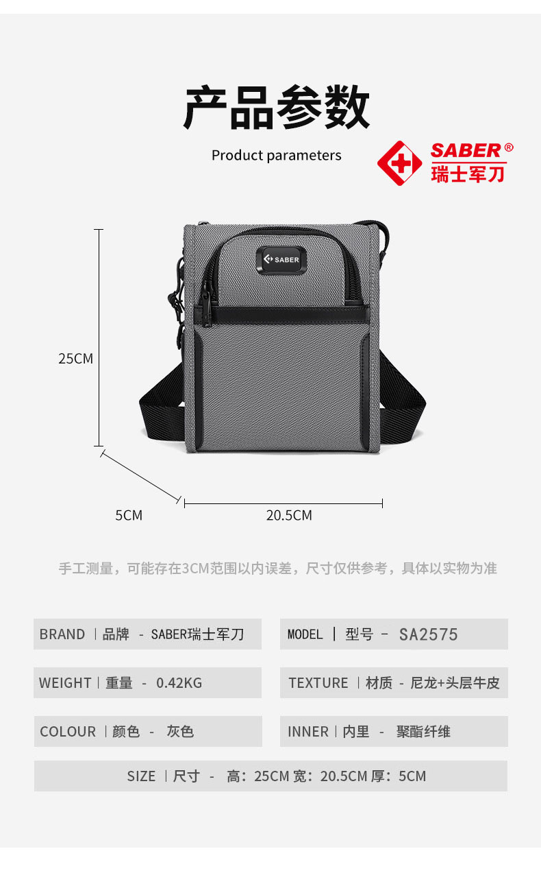 • 商品名称:SA2575瑞士军刀单肩包