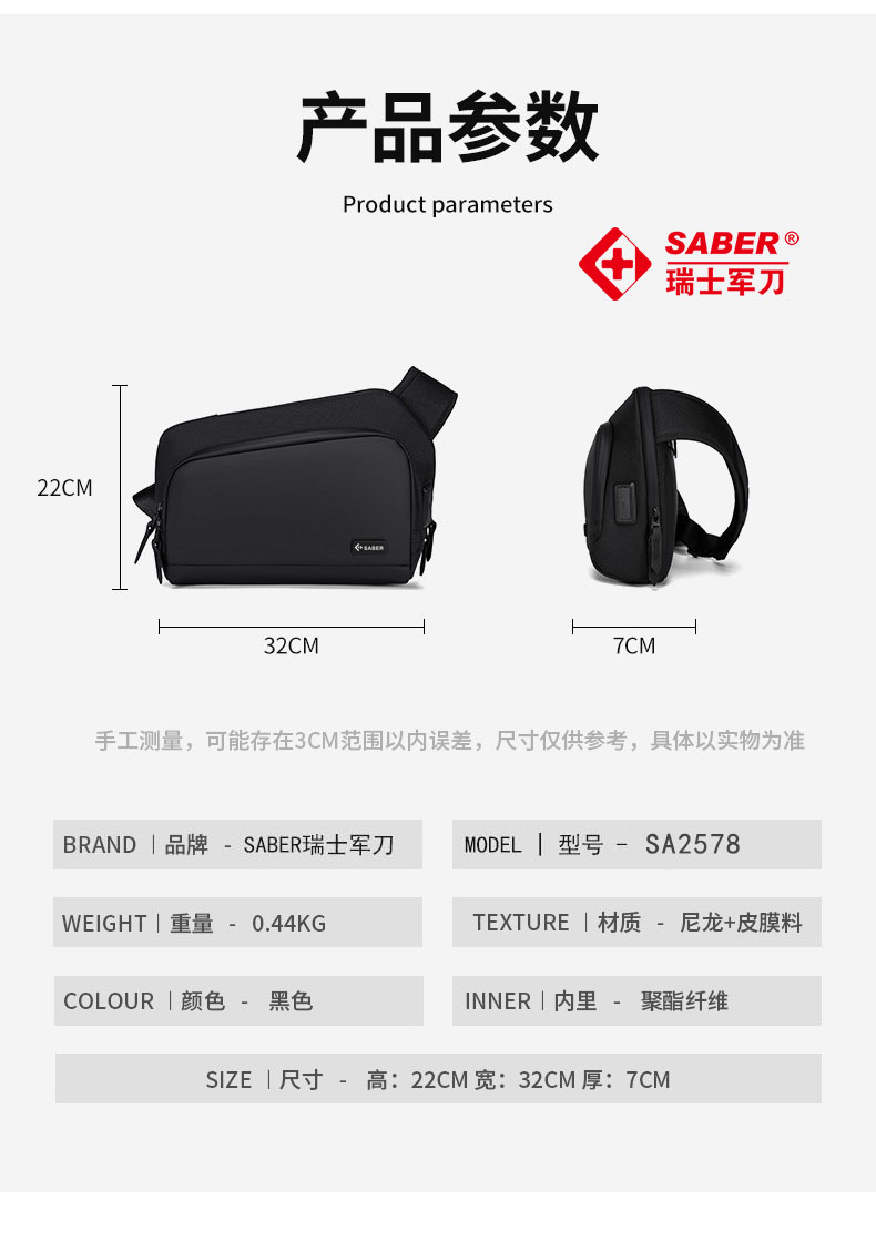 • 商品名称:SA2578瑞士军刀单肩包