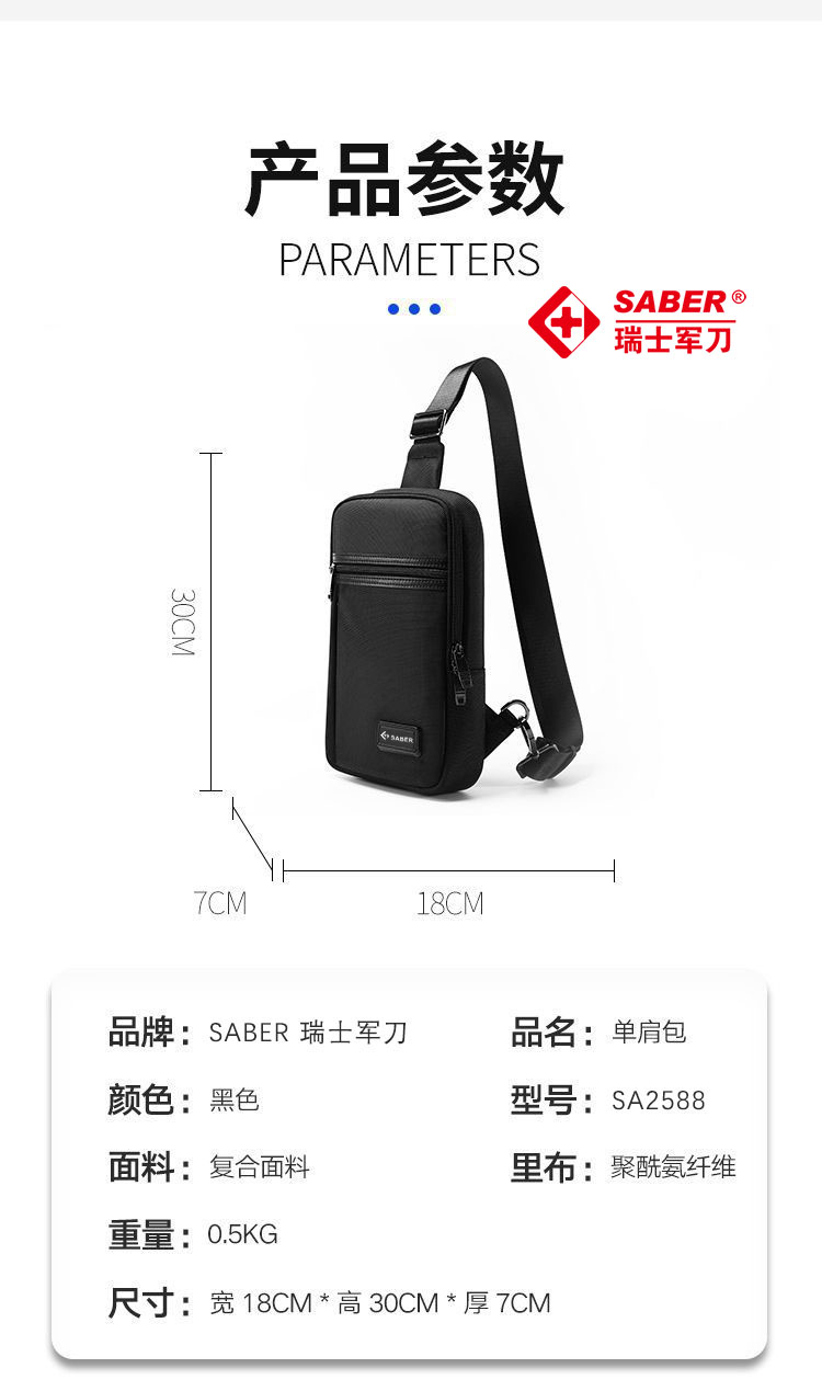 • 商品名称:SA2588瑞士军刀胸包
