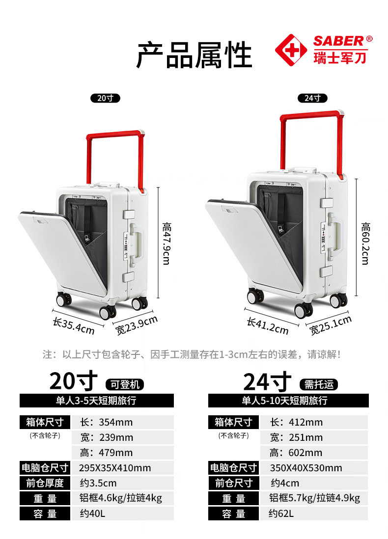• 商品名称:SA8015瑞士军刀24寸旅行箱