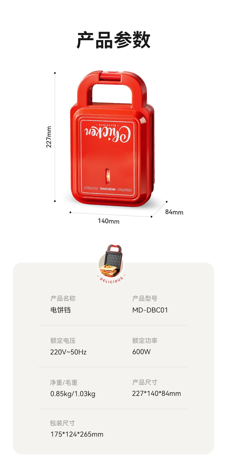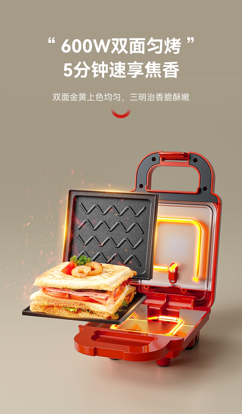 • 商品名称:摩动 家用三明治机红色MD-DBC01