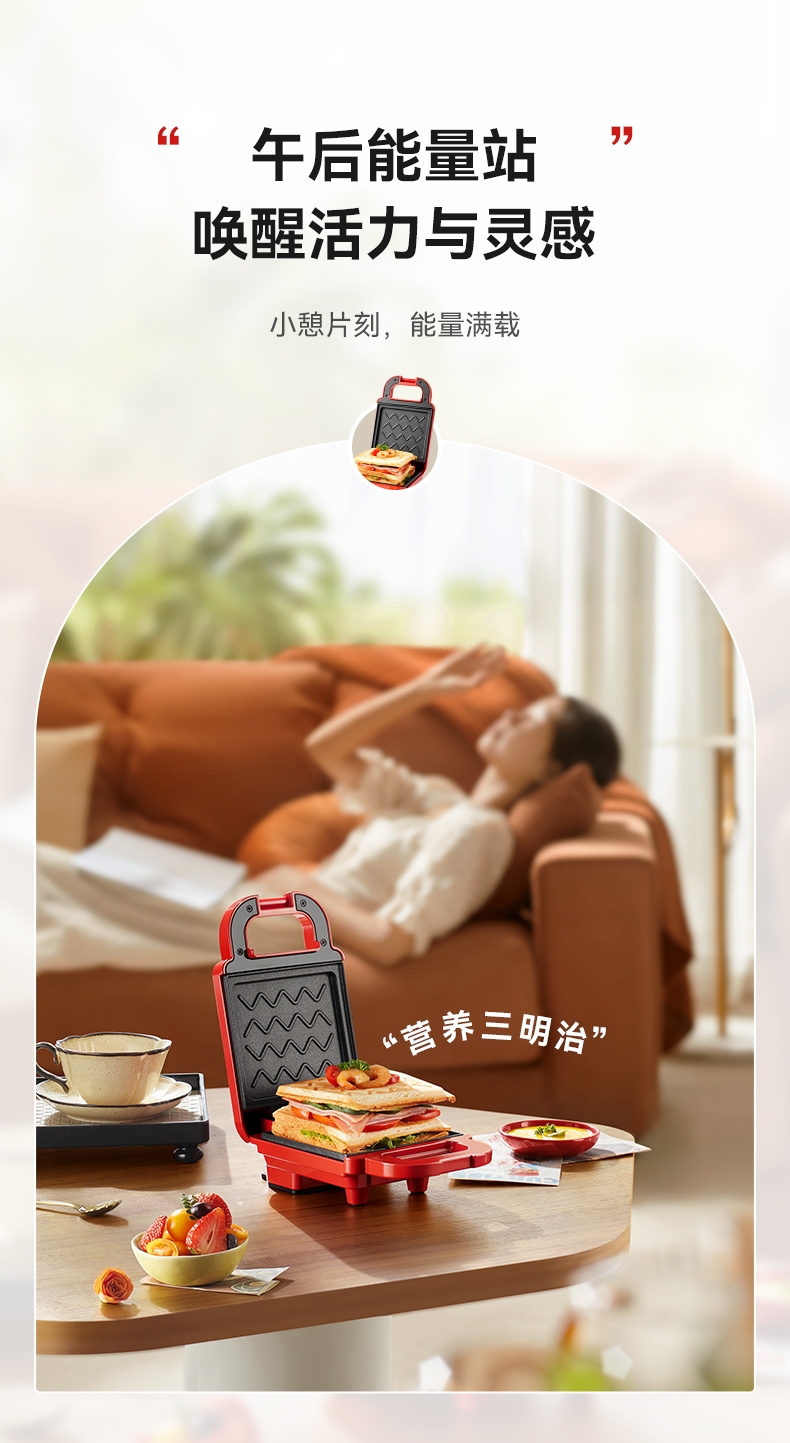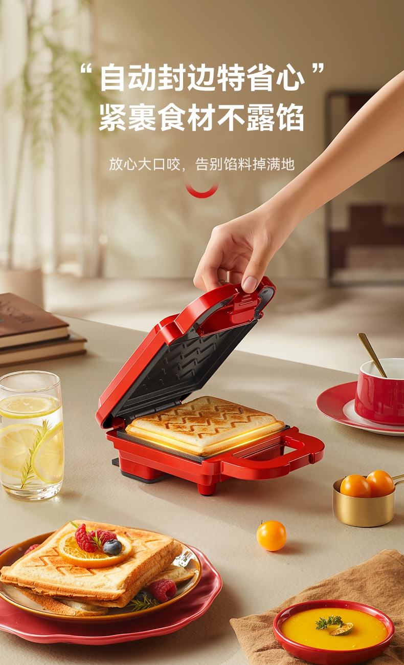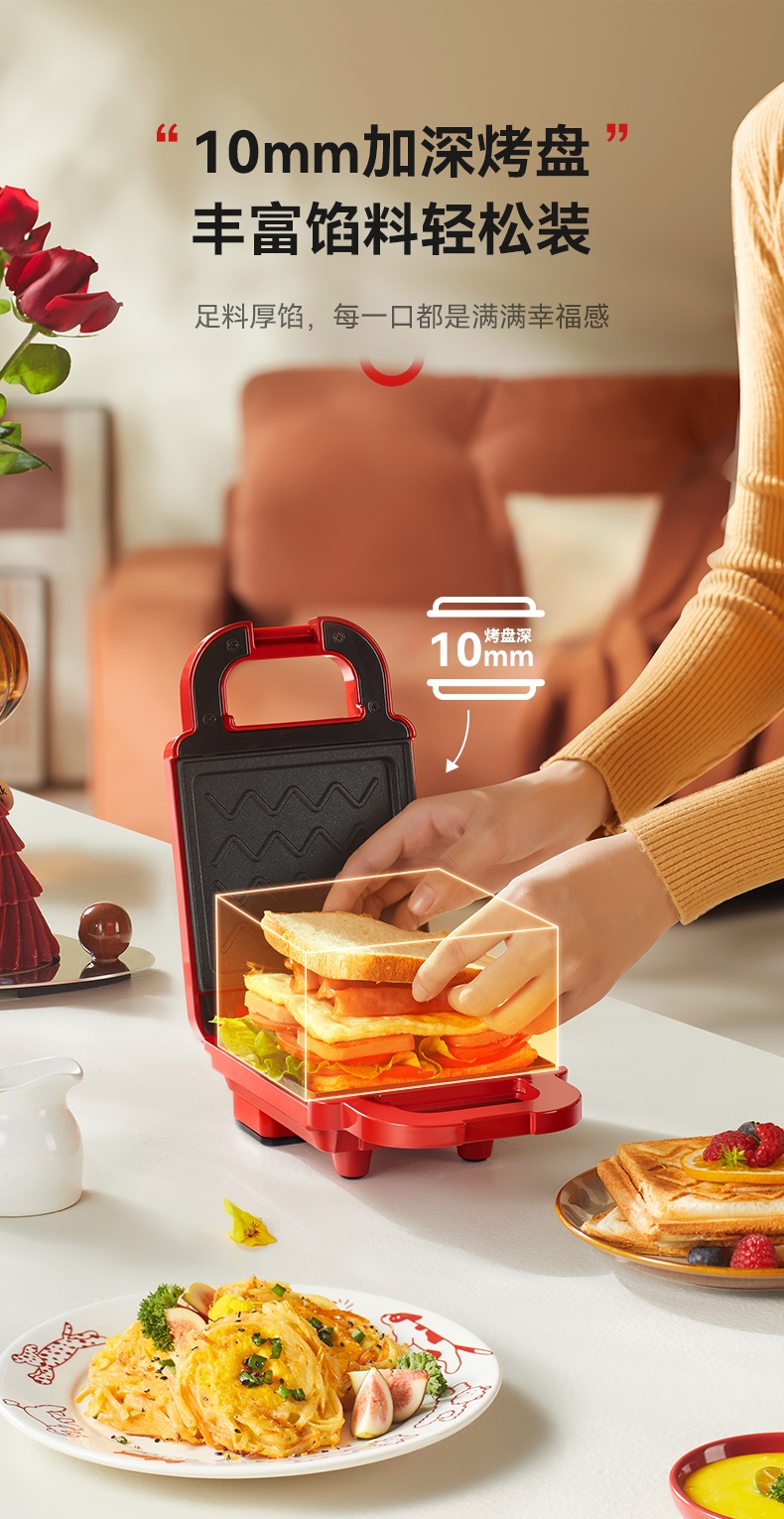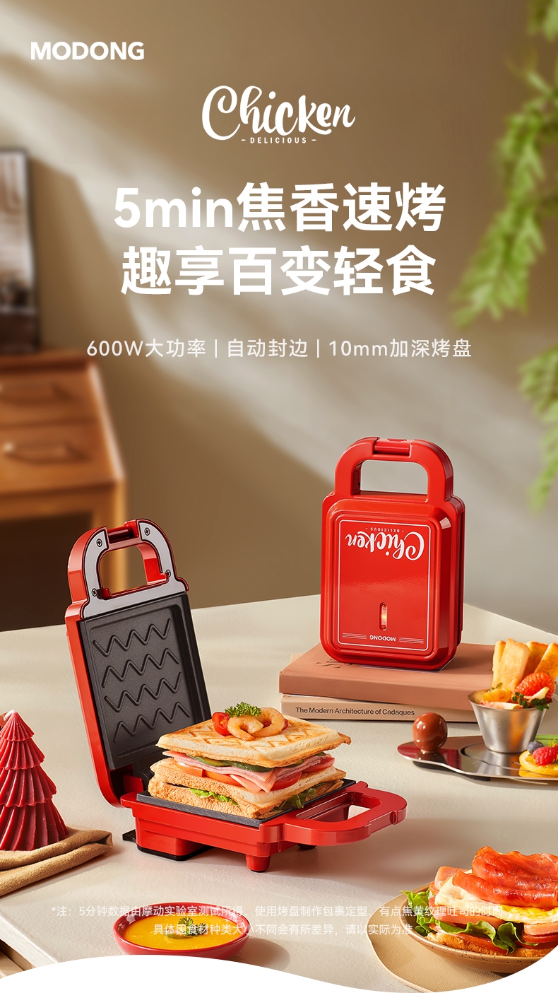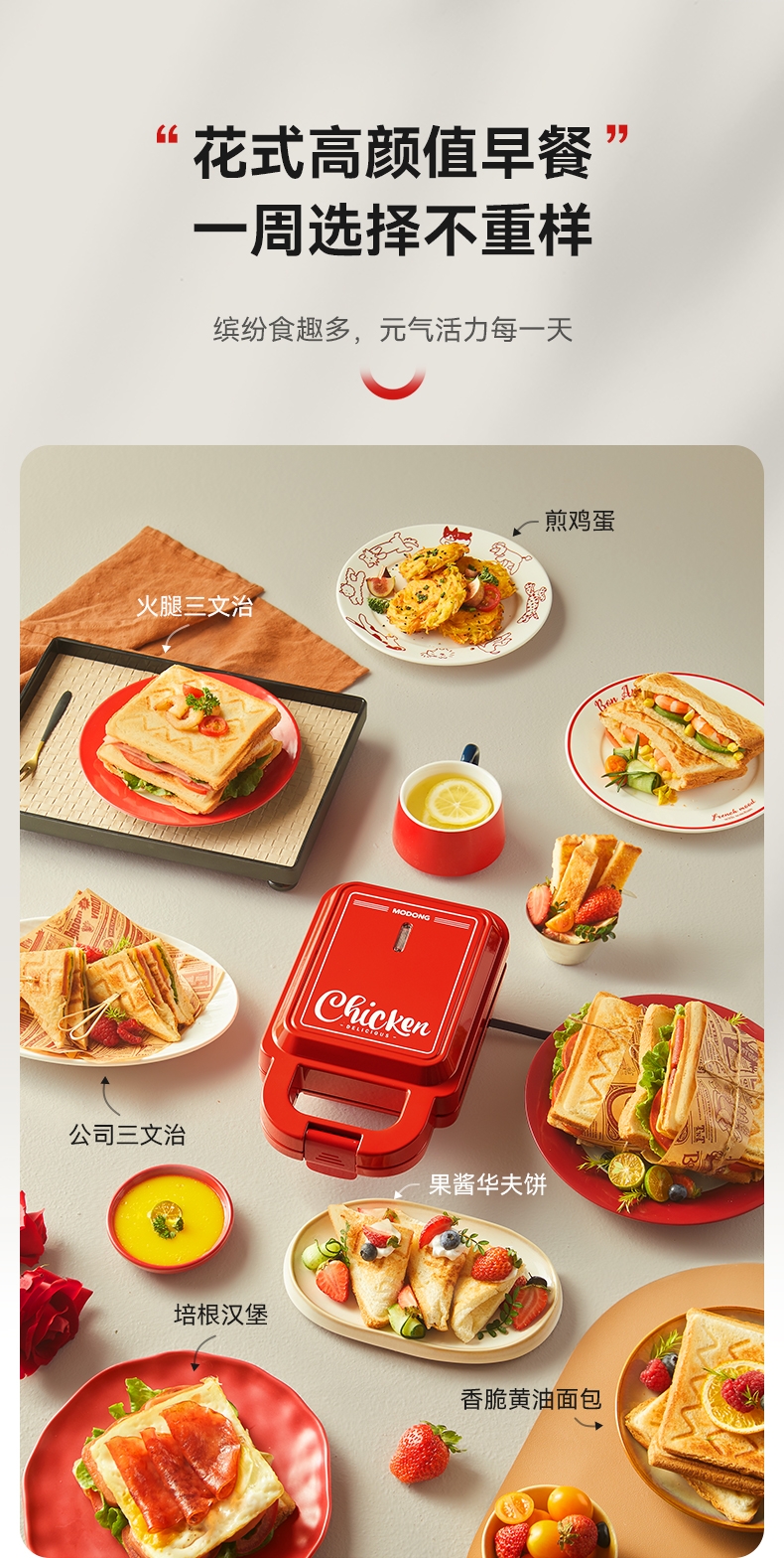 摩动 家用三明治机红色MD-DBC01