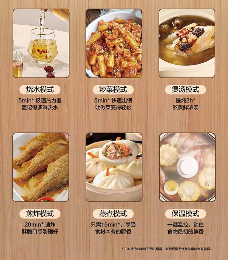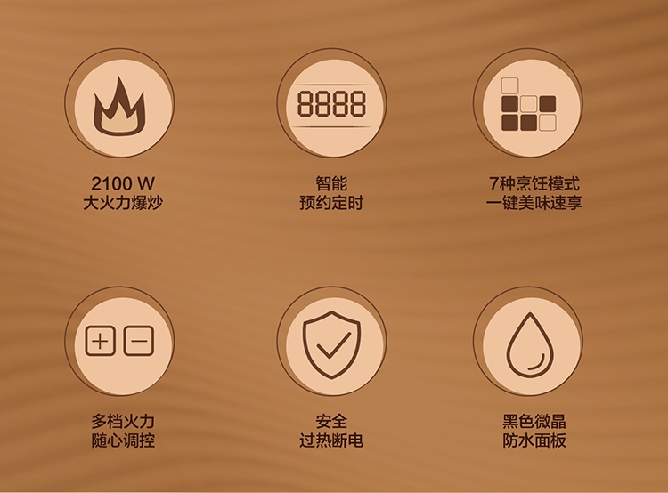 • 功能:煮茶爆炒,炒菜,炖奶,煲汤,火锅,烧水,煎炸,加热,自动断电