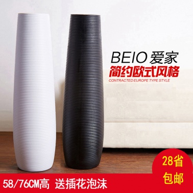 622白色陶瓷落地高花瓶装饰 客厅现代简约干枝插花欧式家居摆件大